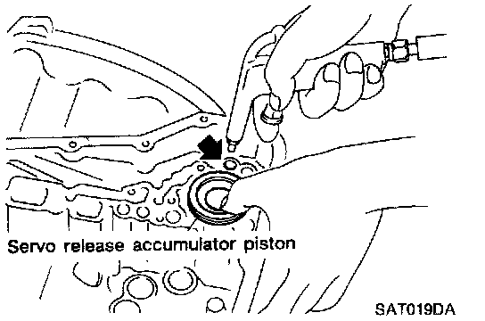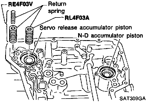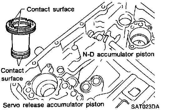 16. Check accumulator pistons and contact surface of transmission case for damage.