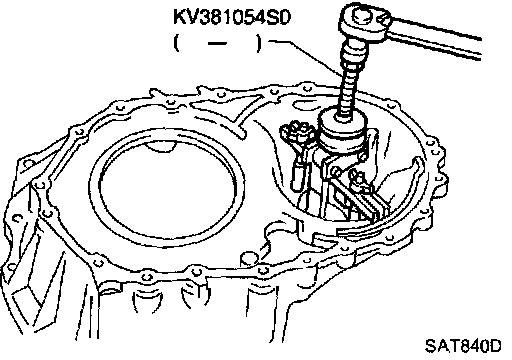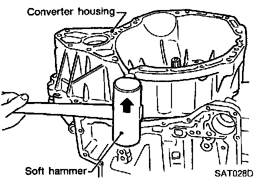 28. Remove differential side bearing outer race from converter housing (RE4F03V).
