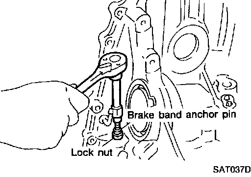 a. Loosen lock nut, then back off band servo anchor end pin.