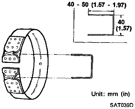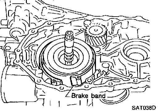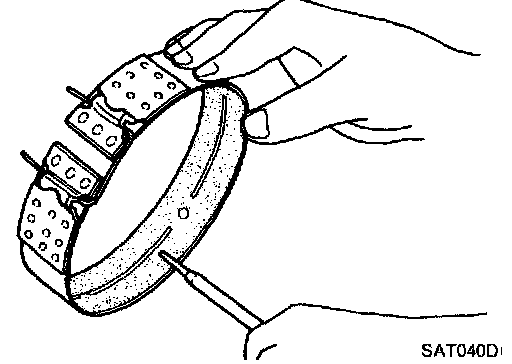 - To prevent brake linings from cracking or peeling, do not stretch the flexible band unnecessarily. When removing the brake band, always secure it with a clip as shown in the figure at left.