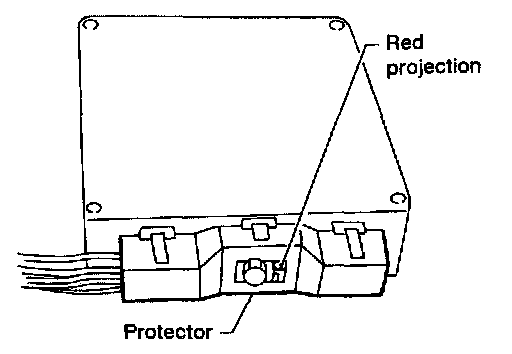 - When connecting A/T control unit harness connector, tighten bolt until red projection is in-line with connector.