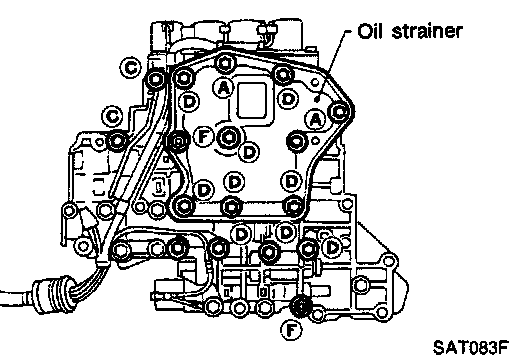 c. Remove reamer bolts (F) and set oil strainer on control valve assembly.