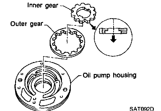3. Install inner and outer gears on oil pump housing.