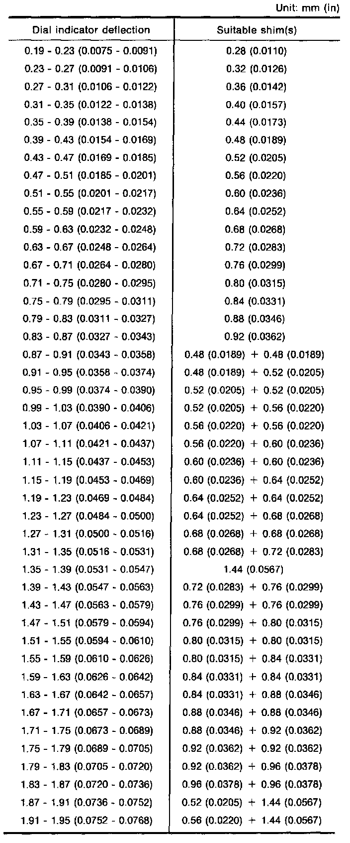 Table For Selecting Differential Side Bearing Adjusting Shim