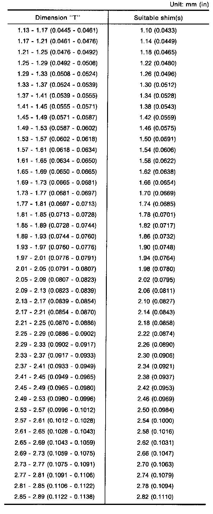 Table For Selecting Reduction Gear Bearing Adjusting Shim