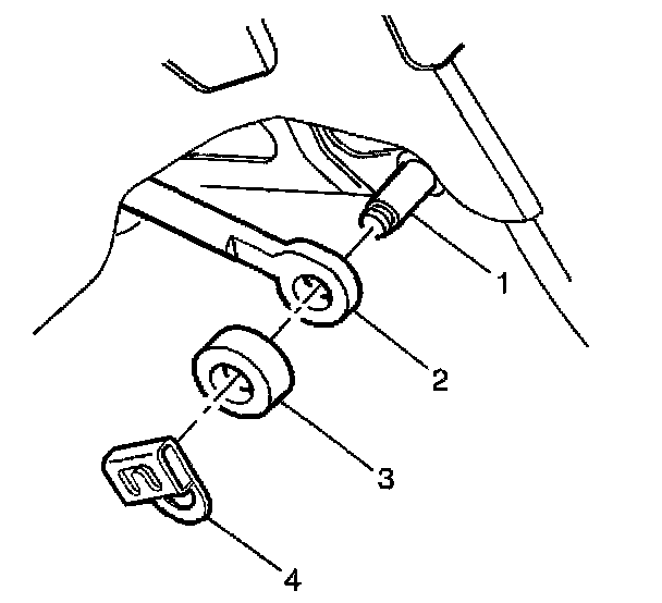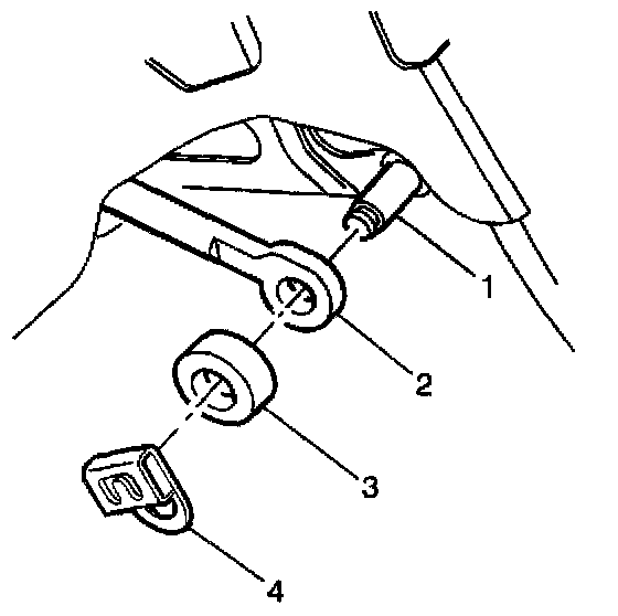 4. Install the pushrod (2) onto the pushrod pin (1). Secure with a spacer (3) and a retainer (4).