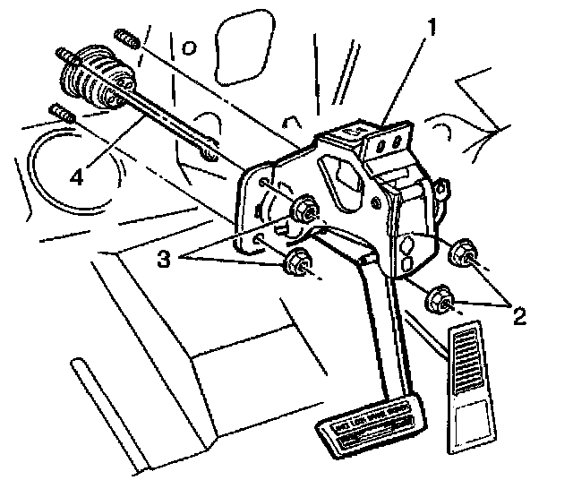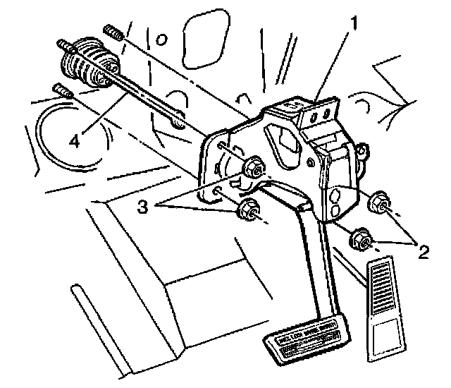 1. Install the brake pedal assembly (1) onto the booster studs.