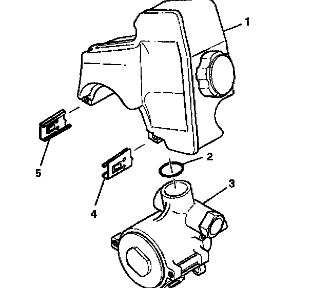 4. Install the retaining clips (4,5) to the reservoir (1) and to the hydraulic pump housing assembly (3).
