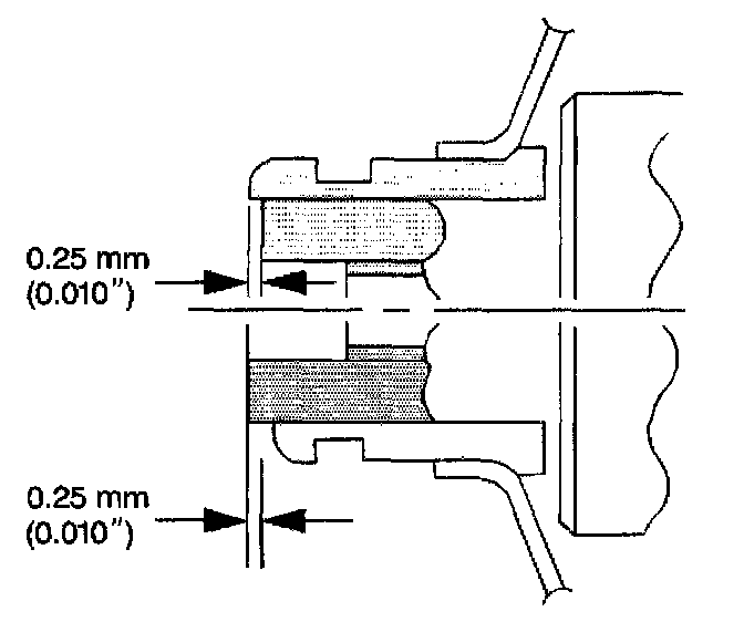 2. Set the axial tolerance of the pulley on the pump shaft at -0.25 mm to 0.25 mm (-0.010 inch to 0.010 inch).