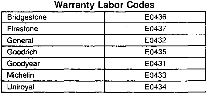 1. The correct tire warranty labor code must be used for the brand of tire replaced. Choose the correct labor code from the list as shown.