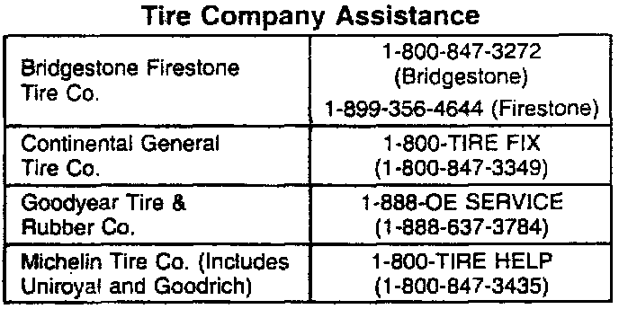 ^ Non-original equipment tires (those without a TPC number molded on the sidewall except Prizm and Tracker) are not covered.