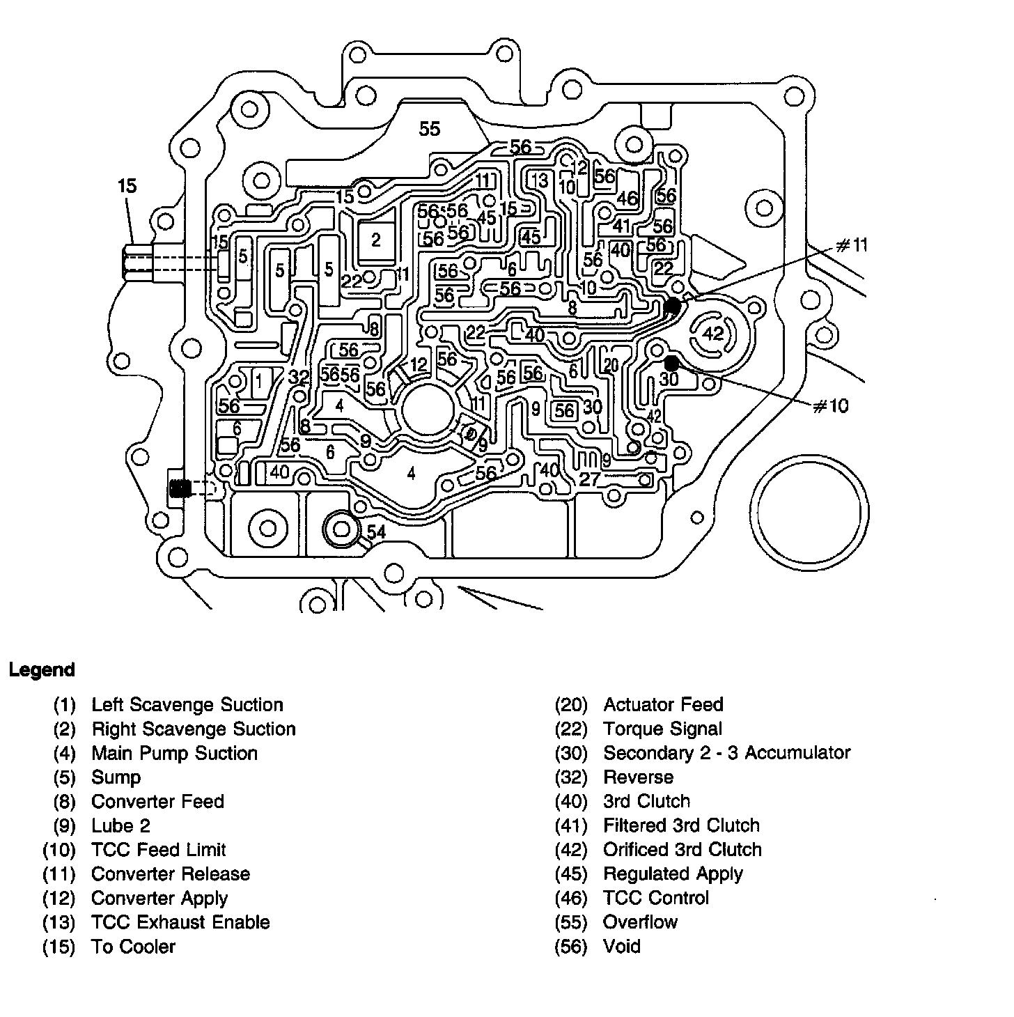 Case Cover Fluid Passages (Secondary Pump Body and Upper Control Valve Body Side):