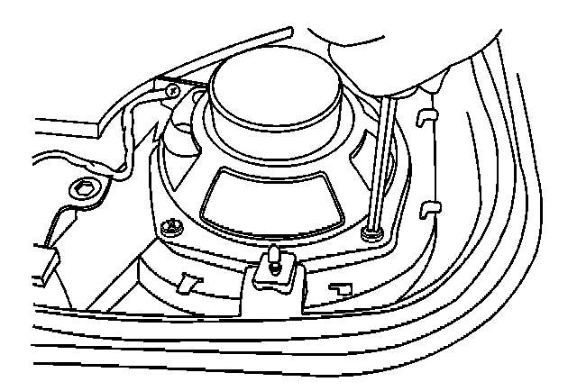 2. Install the fasteners in order to secure the rear door speaker to the rear door trim panel.