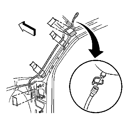 1. Lower the headliner in order to access the drain hose connections. Refer to Headliner Replacement (with Sunroof) (Headliner Replacement (With Sunroof))Headliner Replacement (without Sunroof) (Headliner Replacement (Without Sunroof)) in Interior Trim.