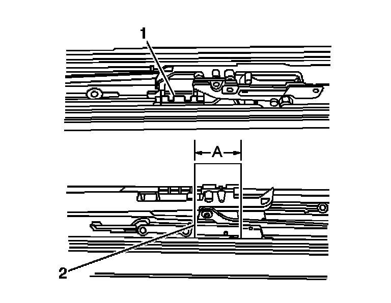 3. Set the gage into the track near the rear of the opening between the move driver slide (1) and the bracket.