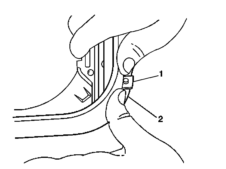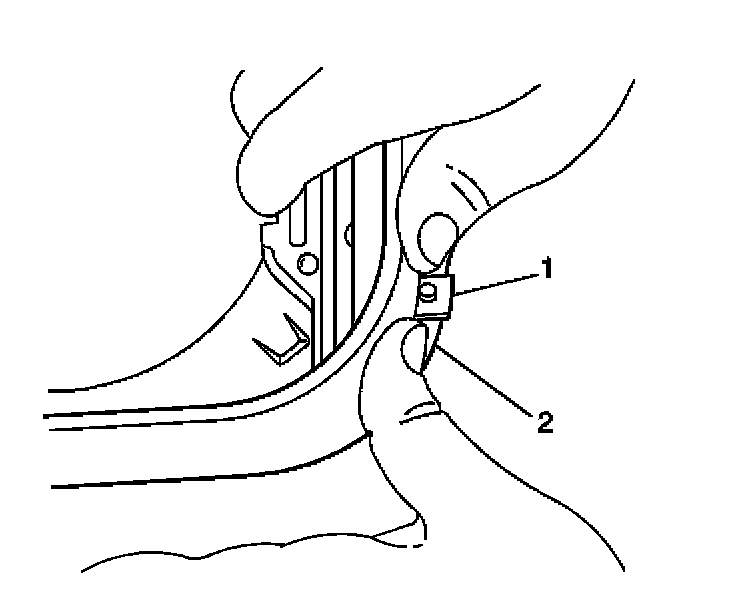 3.2. Pull up on the left side until the lower tab (1) clears the roof opening (2).