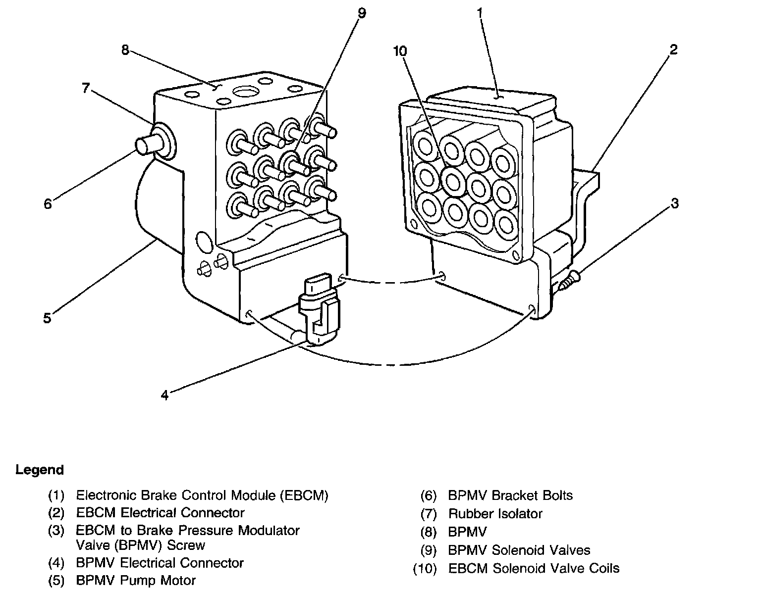 Important: There is a rubber isolator located under the BPMV and on the mounting studs. The rubber isolators protect the BPMV and the EBCM from vehicle vibrations.