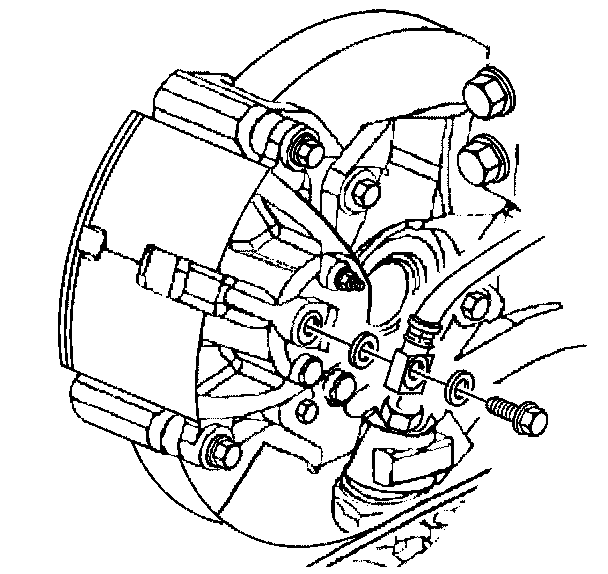 7. Remove the brake hose to caliper bolt from the brake caliper.
