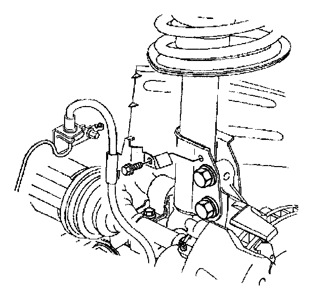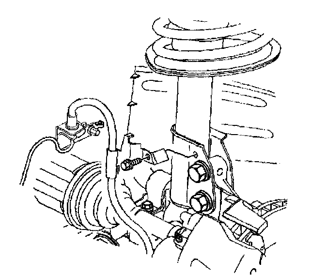 11. Remove the hose bracket bolt from the strut assembly and remove the hose.