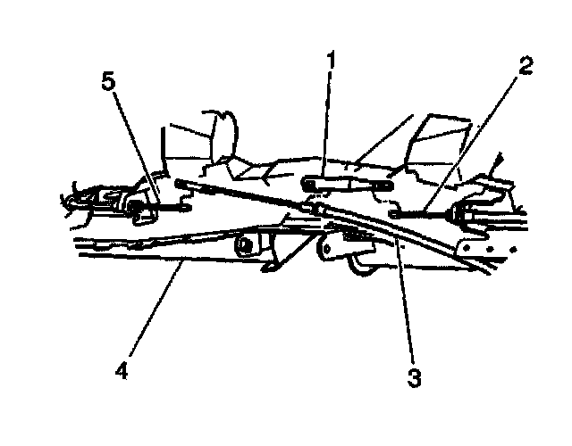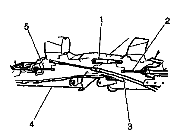 6. Disconnect the intermediate cable (3) from the right rear park brake cable (5).