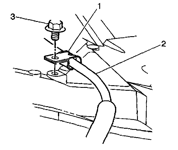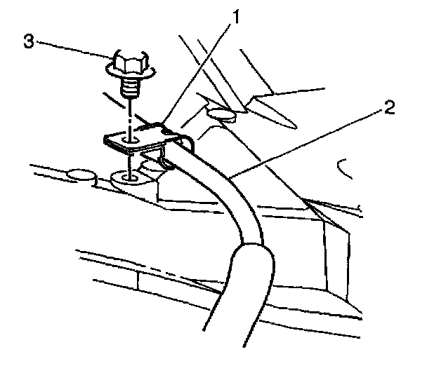 1. Install the right park brake cable (2) to the park brake cable support bracket (1).