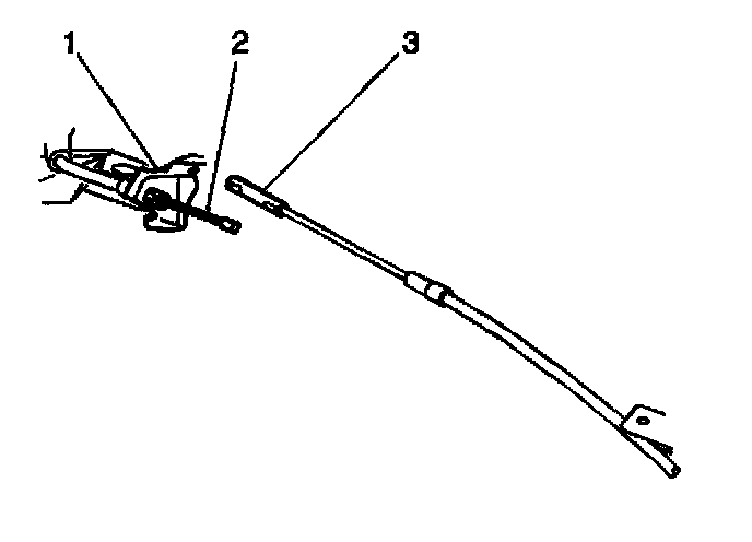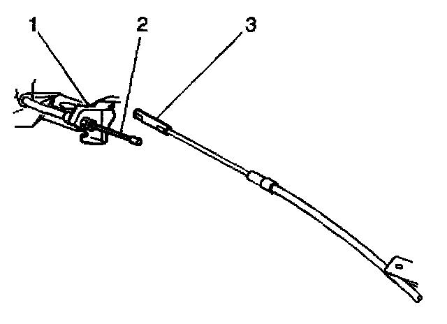 6. Pull down on the intermediate park brake cable (2) near the park brake cable connector (1).