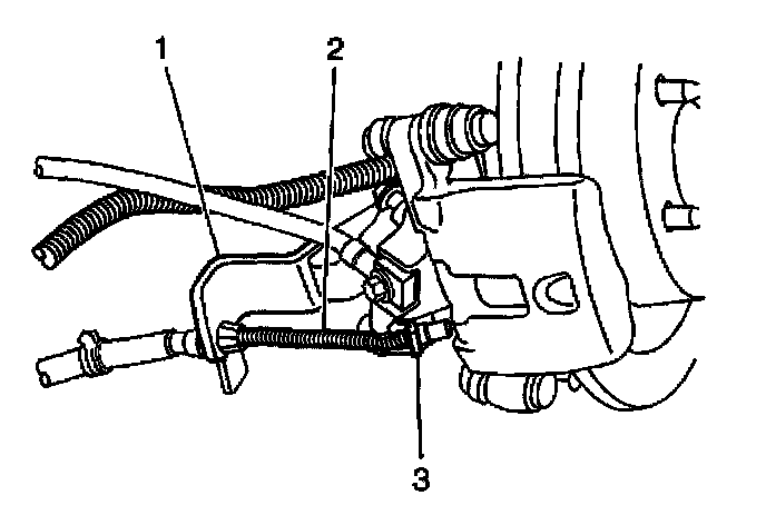 4. Install the right park brake cable (2) to the caliper park brake cable bracket (1). Ensure that the locking tabs are properly seated.