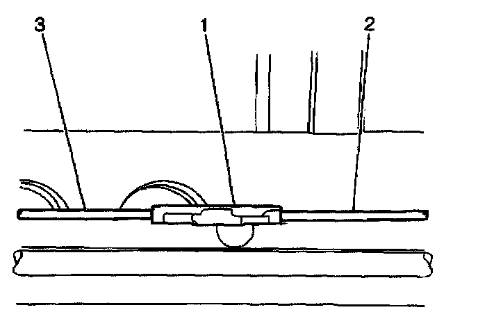 8. Install the right park brake cable (2) into the park brake cable guide (1).