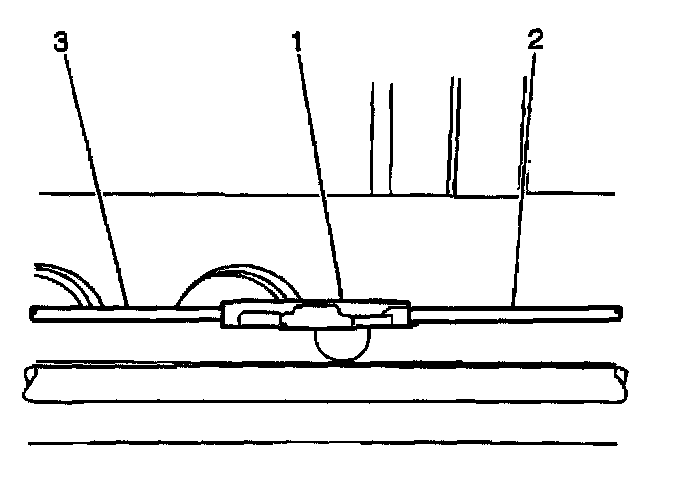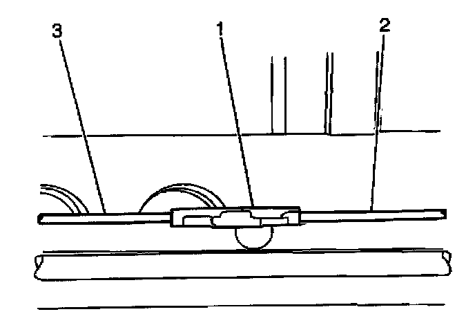 7. Connect the front park brake cable (3) to the park brake cable connector (1) on the Intermediate park brake cable (2).