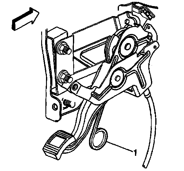 Important: The automatic adjustment park brake pedal assembly and the front park brake cable are serviced as a unit. The front park brake cable has no threads and is not adjustable.