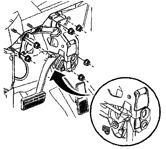 ^ Tighten the brake pedal to booster stud mounting nuts to 23 Nm (17 ft. lbs.).