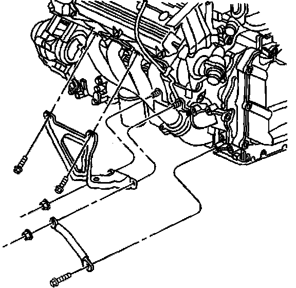 2. Loosely install the two upper bolts securing the front engine mount bracket to the cylinder head.