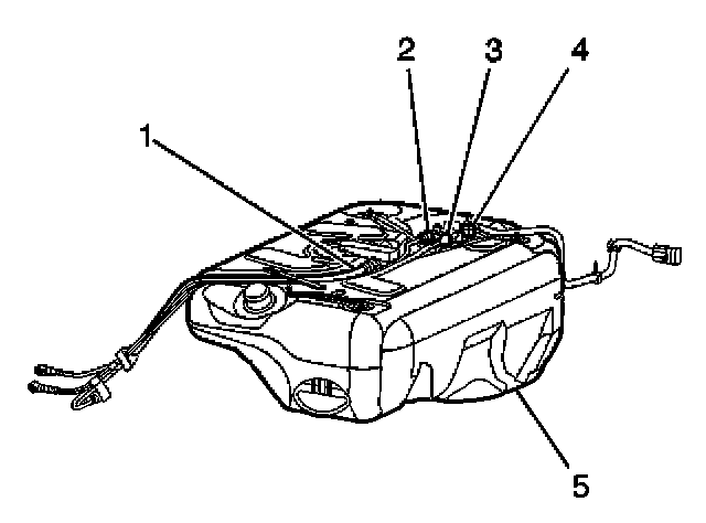 1. Position the EVAP vent hose/pipe (1) on the fuel tank (5).