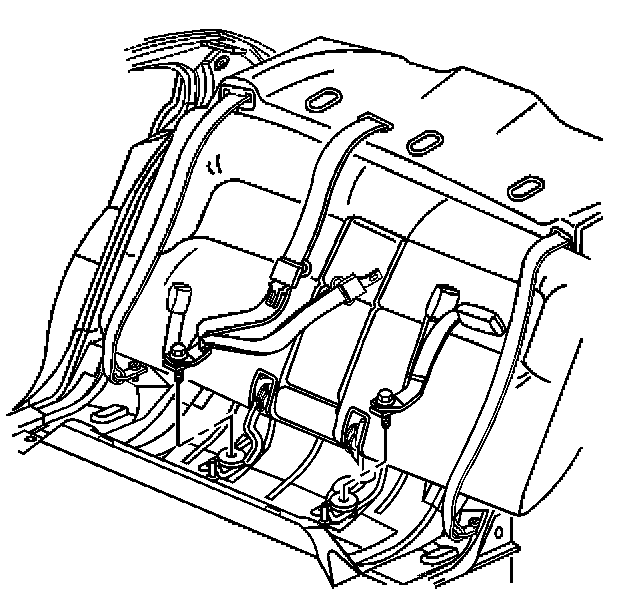 2. Remove the rear seat belt buckle anchor fasteners.