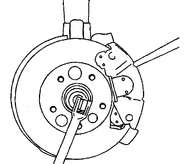 3. Insert drift of screwdriver into the caliper and rotor in order to prevent rotor from turning.