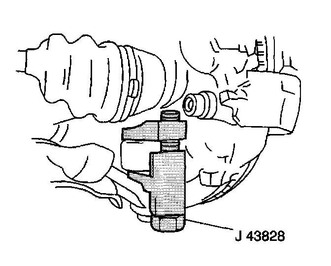 11. Use J43828 to separate the ball joint from the steering knuckle.