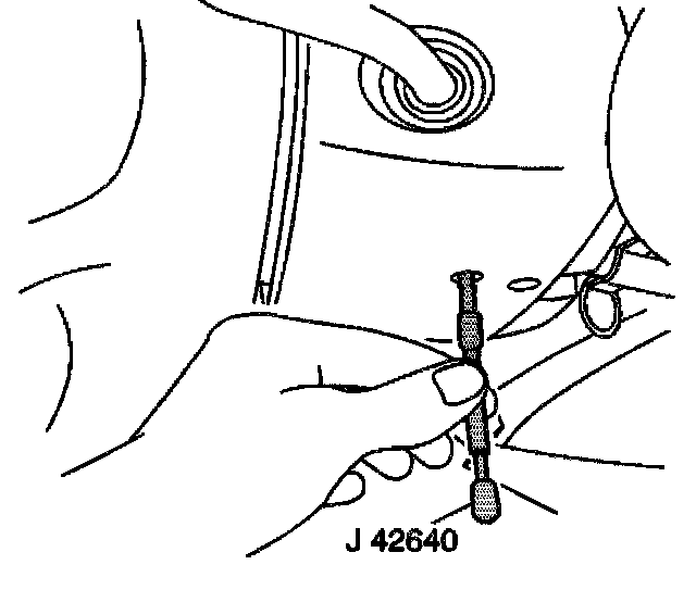 1. Lock the steering column by installing the J 42640 into the underside of the steering column.