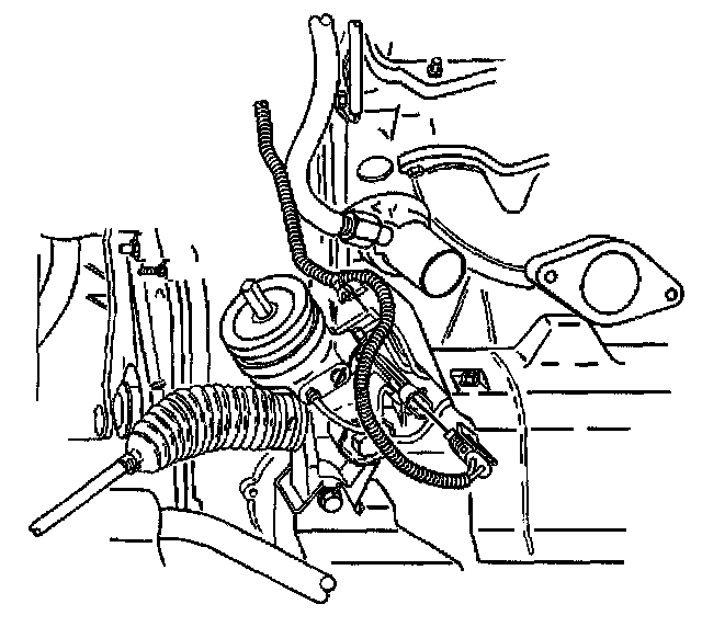9. Remove the power steering pressure hose (2) from the power steering gear.