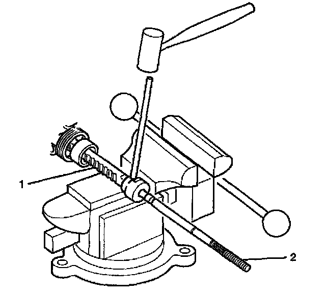 12. Rotate the inner tie rod housing (2) counterclockwise, while holding the rack stationary, until the inner tie rod (1) separates from the rack (5).