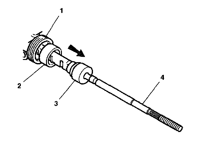 7. Rotate the inner tie rod housing (4) counterclockwise, while holding the rack stationary, until the inner tie rod separates from the rack (5).