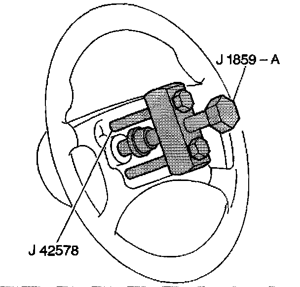 10. Remove the J42578 and J1859-A from the steering wheel.