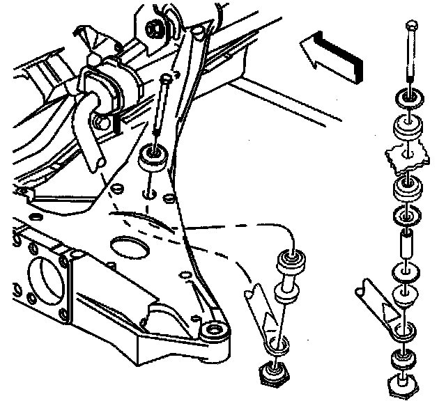1. Loosely install the stabilizer link insulators washers, nut and bolt.