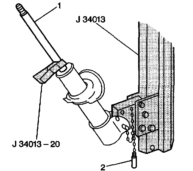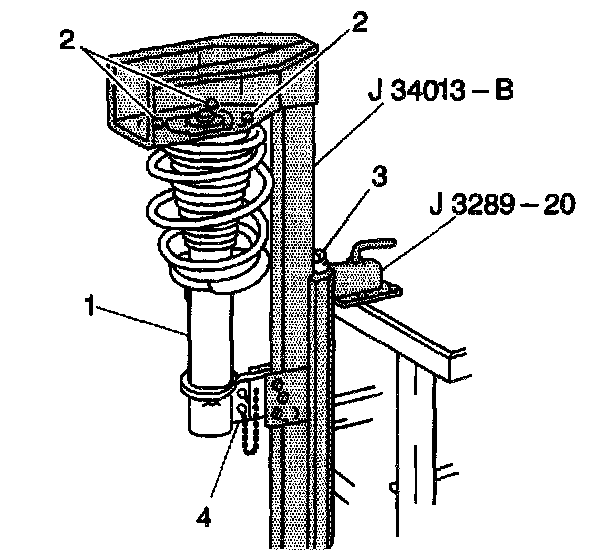 2. Install the strut (1) into the J34013-B.