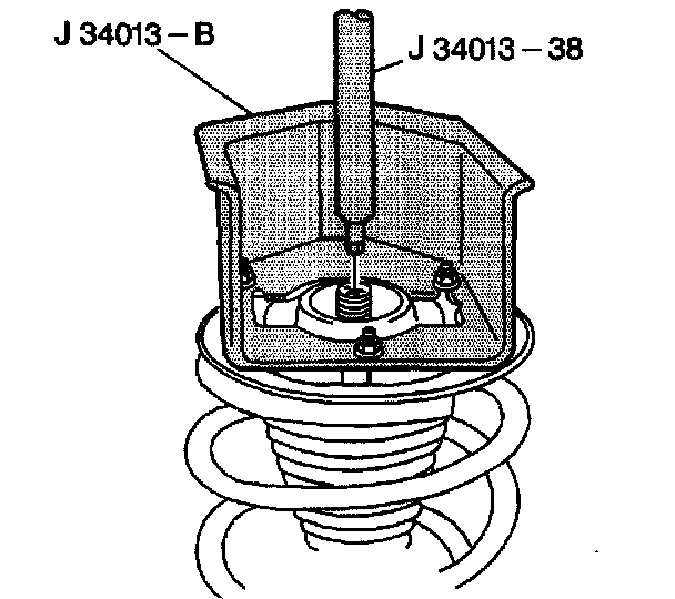 5. Install the J34013-38 in order to help guide the strut shaft out of the assembly.