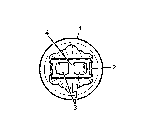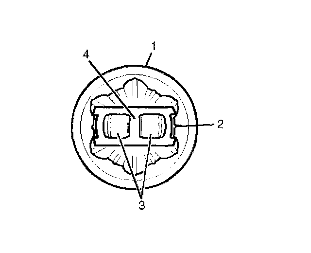 10. Position the CV joint cage (4) and the CV joint inner race 90 degrees to the centerline of the CV joint outer race (1) and align t1he CV joint cage windows (3) with the lands of the CV joint outer race (1).