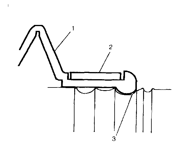 7. Hold the cage and the inner race 90 degrees to the centerline of the outer race (1) and align the cage windows (3) with the lands of the outer race (2).