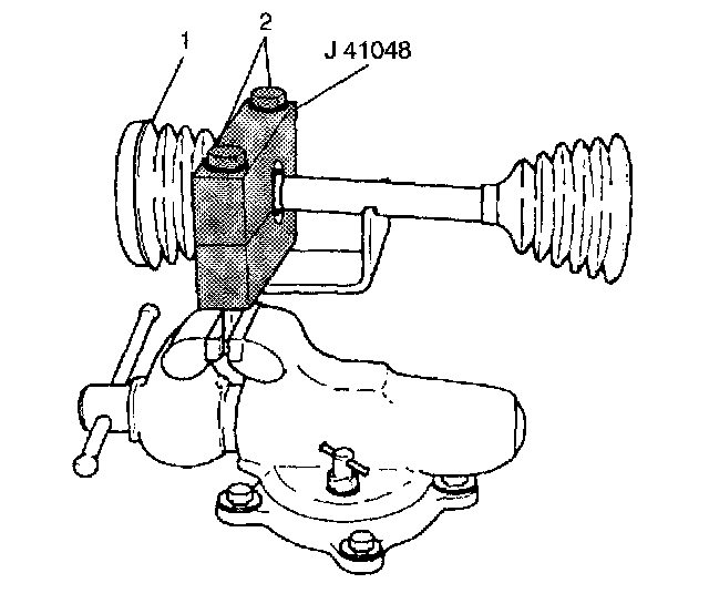 3.1. Position the outboard end (1) of the halfshaft assembly in tool J41048.