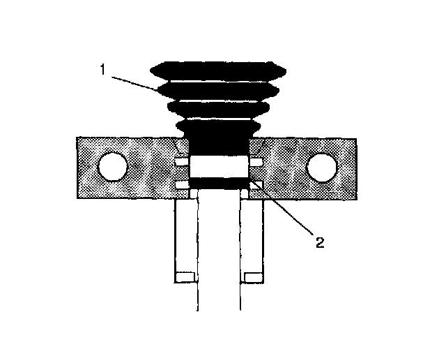 1. Place the new swage ring (2) onto the small end of the joint seal (1). Slide the seal (1) and the swage ring (2) onto the halfshaft bar.