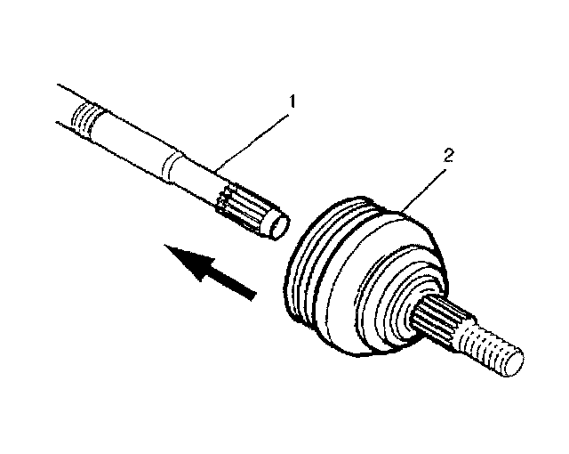 12. Push the CV joint (2) onto the halfshaft bar (1) until the retaining ring is seated in the groove on the bar.