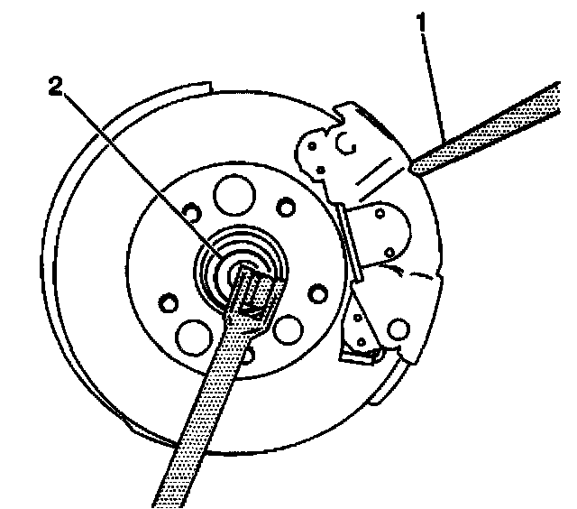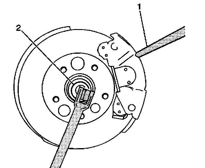 7. Insert a drift or punch (1) into the rotor and against the caliper in order to prevent the hub and bearing from turning.